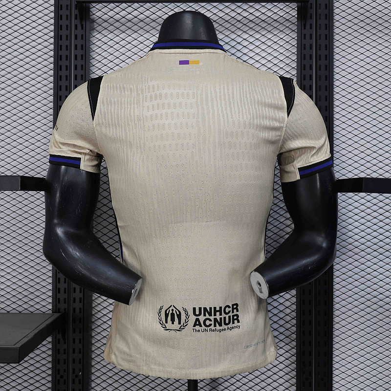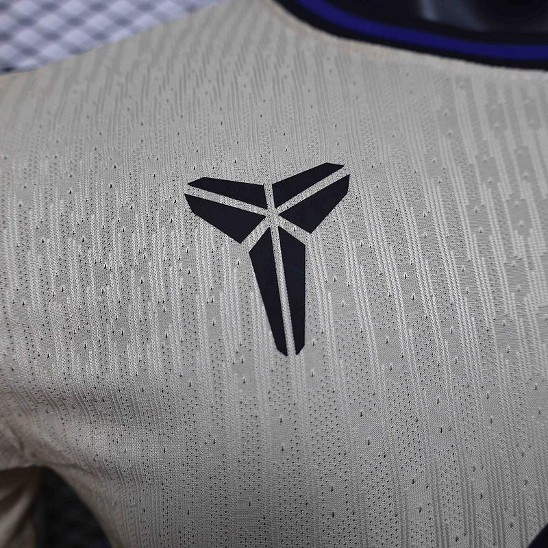 Con un diseño en dorado suave y detalles en negro y azul, esta camiseta de visita rinde homenaje a la elegancia y grandeza del club. Incluye el logo de Kobe Bryant como tributo especial, sumando significado a una prenda única.