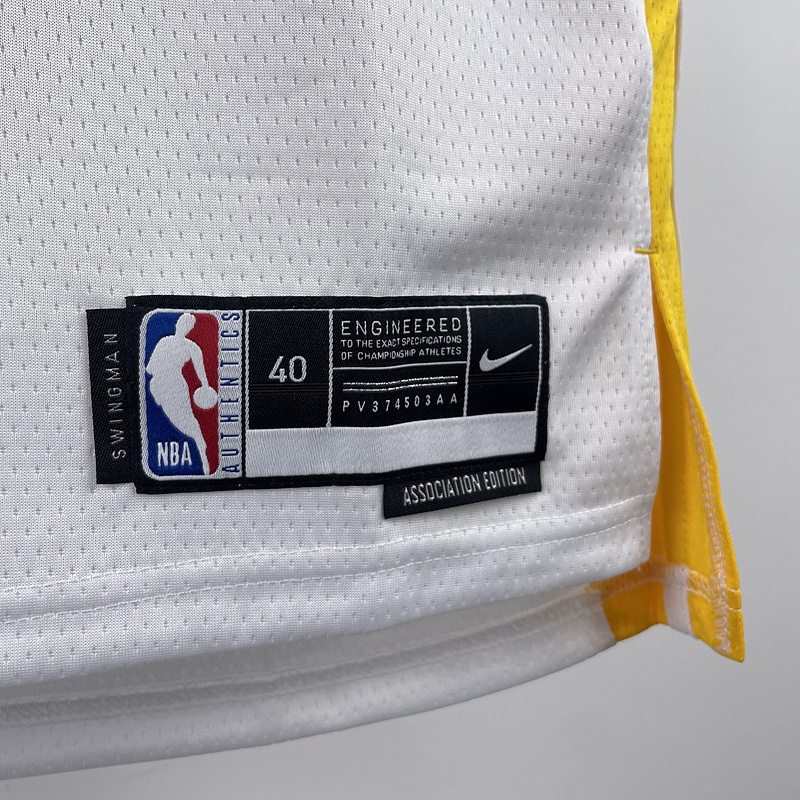 Con su base blanca y detalles en azul y amarillo, esta camiseta representa la versión más clásica del uniforme de los Warriors. El logo del puente y el número 30 al frente hacen alusión directa al legado de su jugador más icónico.